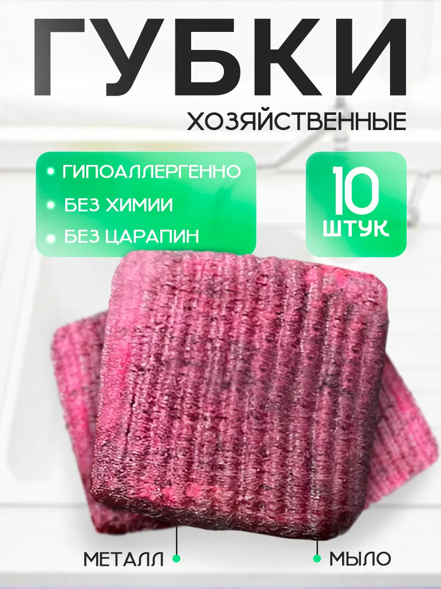 Губки для посуды металлические с мыльной пропиткой 10 шт